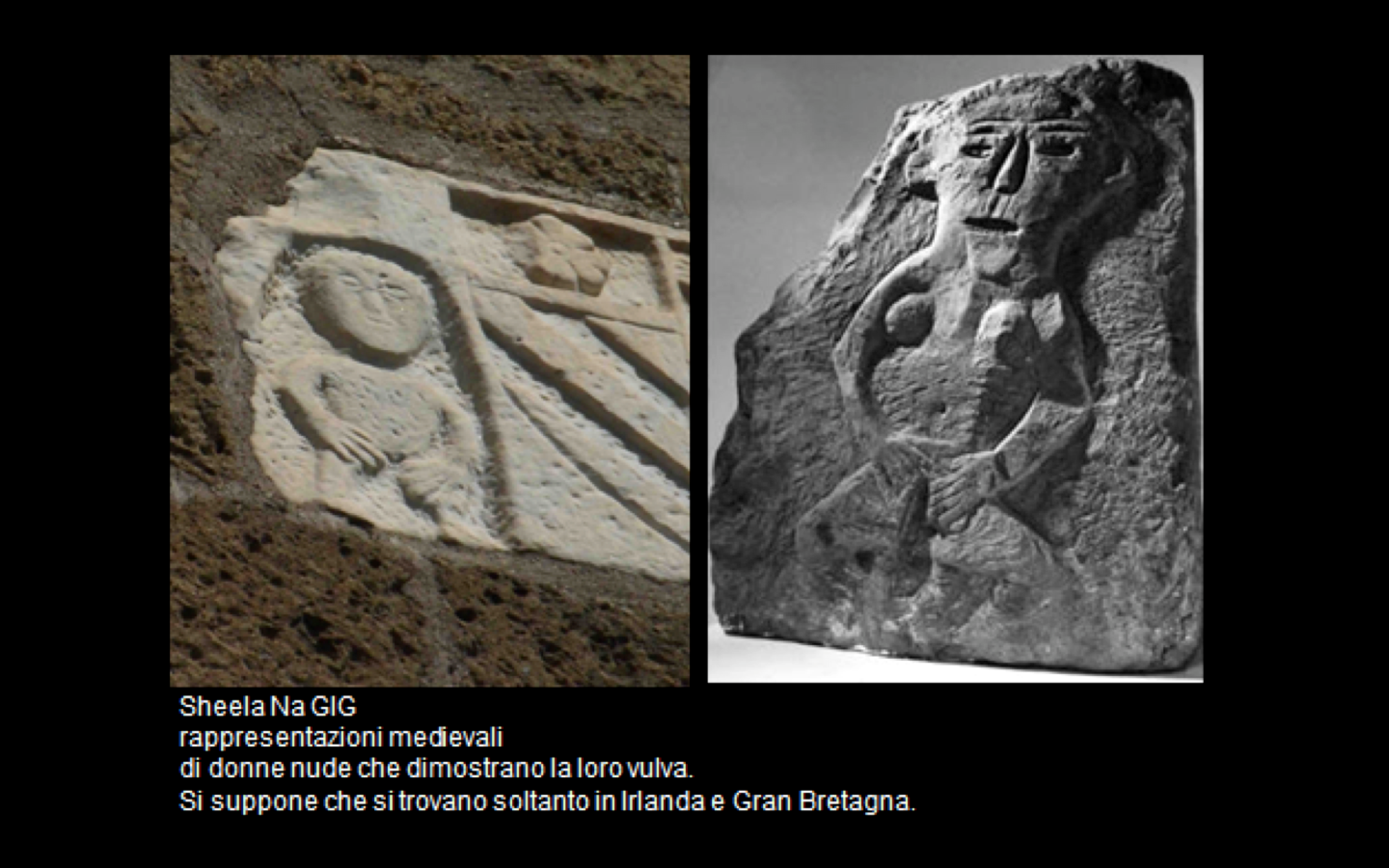 [4] Medieval sculptures of naked women displaying their vulva mostly found in Ireland and Great Britain.