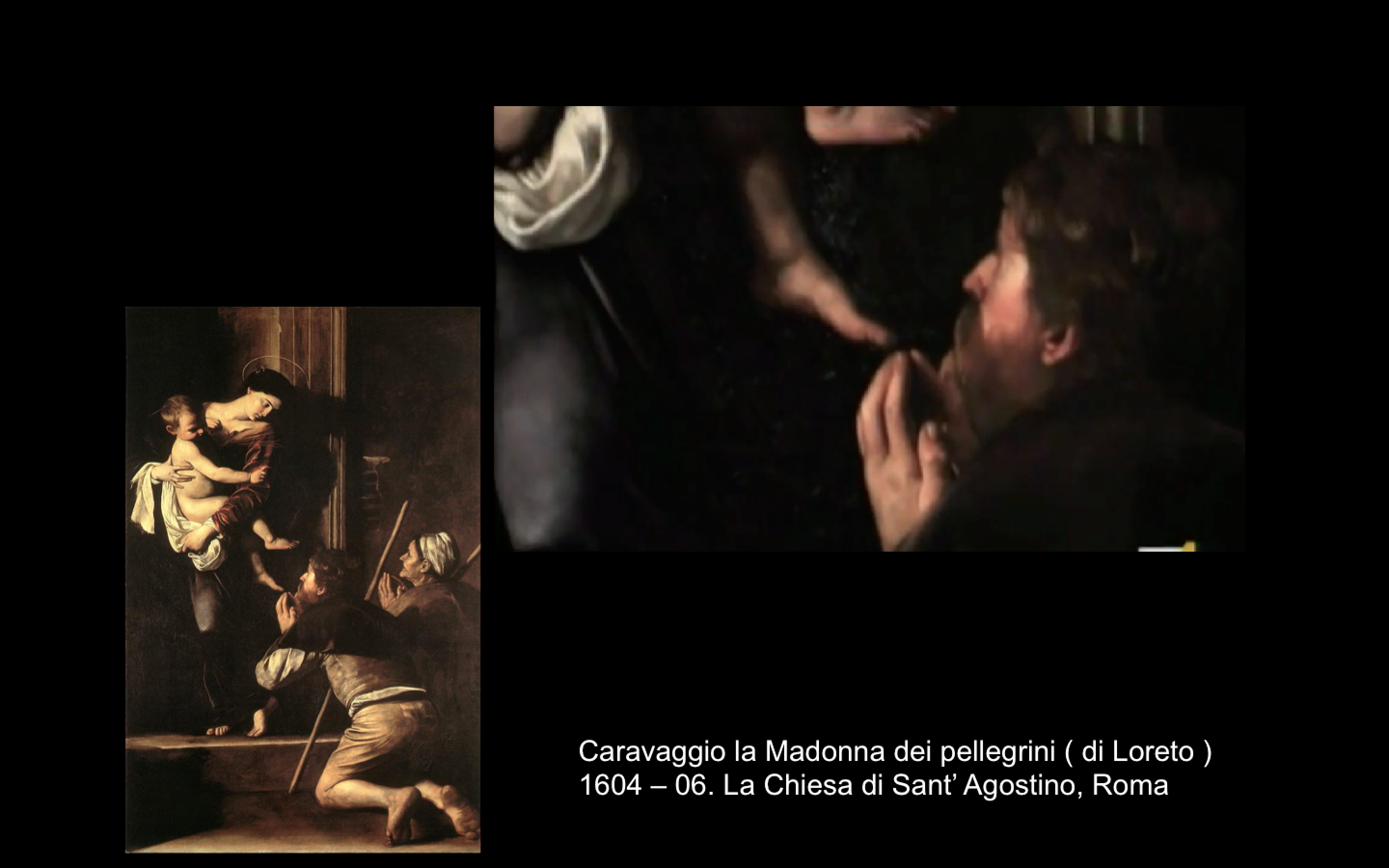 ● There is the head of a black panther in the center of Caravaggio’s painting of the Madonna di Loreto (Madonna dei Pellegrini) (1604-6) in the church of Sant’Agostino in Campo Marzio. This area of Rome was home to a large temple dedicated to Isis, the great female Egyptian goddess of religion, Bastet. The Black Panther is a universal symbol of female power.