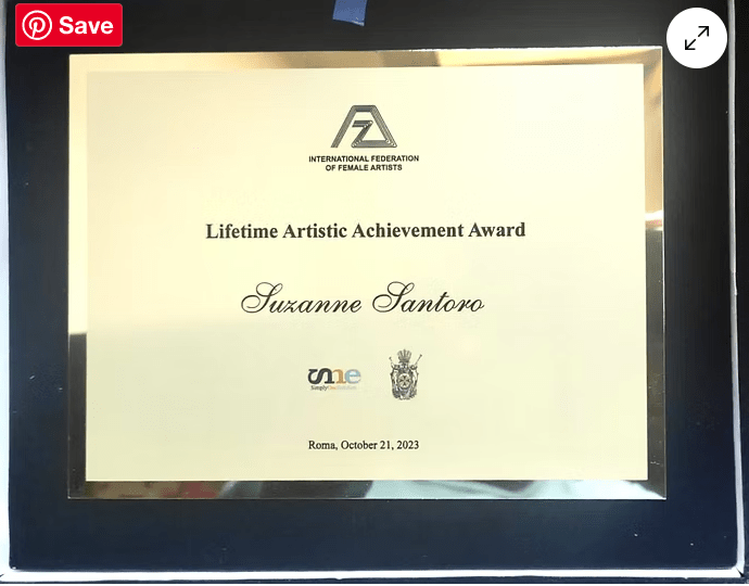 Suzanne Santoro has received the ‘Lifetime Artistic Achievement Award’ by the International Federation of Female Artists at the Casa Internazionale delle Donne in Rome on 21st October 2023.